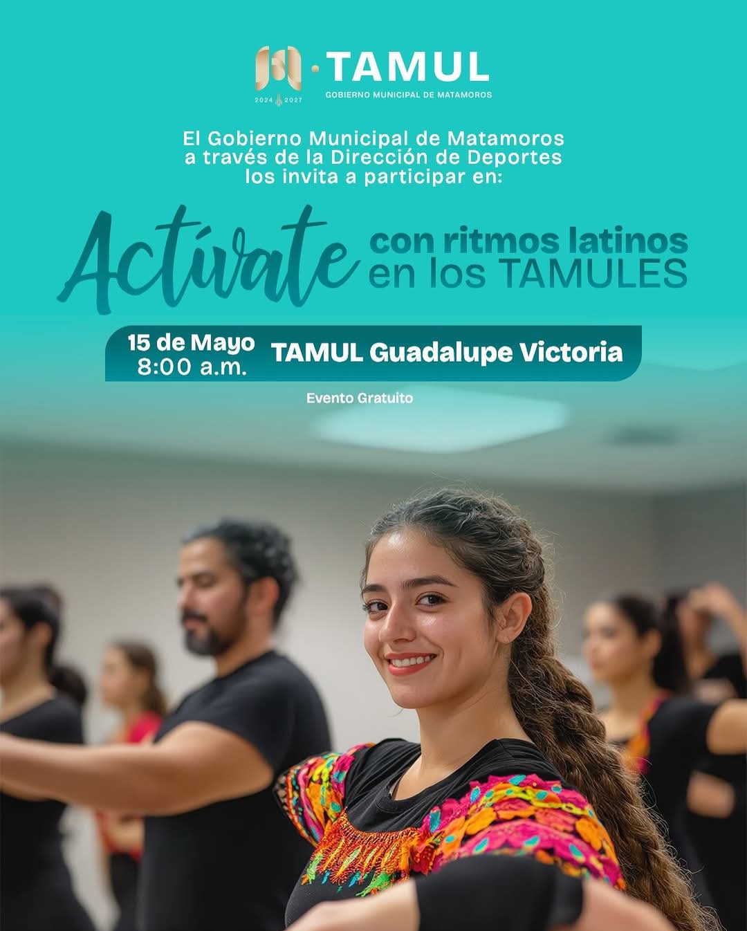 La actividad se llevará a cabo el próximo jueves 15 de mayo a las 8:00 de la mañana en las instalaciones del TAMUL Guadalupe Victoria, donde instructores capacitados guiarán una rutina llena de energía, diseñada para todas las edades y niveles de condición física. La sesión incluirá movimientos aeróbicos inspirados en ritmos latinos como salsa, merengue, bachata y más.