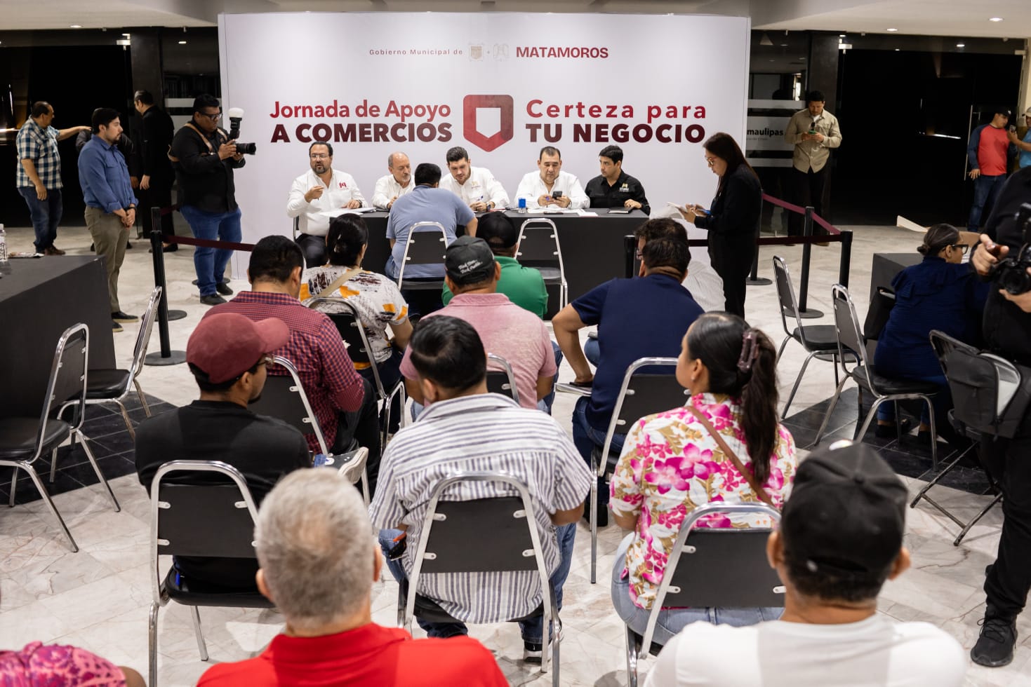 H. Matamoros, Tamaulipas.- En el marco de la audiencia pública para el fortalecimiento del comercio local, el presidente municipal de Matamoros, Beto Granados, informó en entrevista con medios de comunicación sobre los acuerdos y acciones analizados en la reciente mesa de seguridad celebrada en la ciudad.