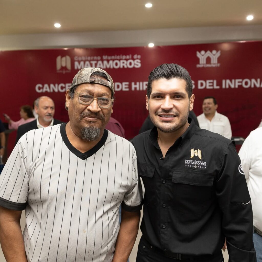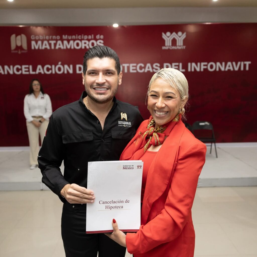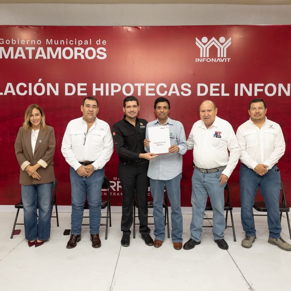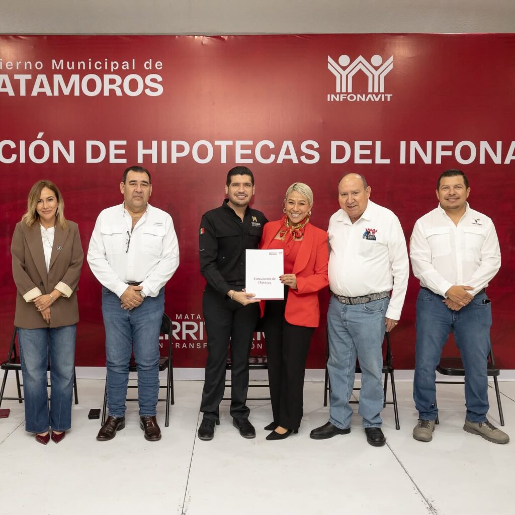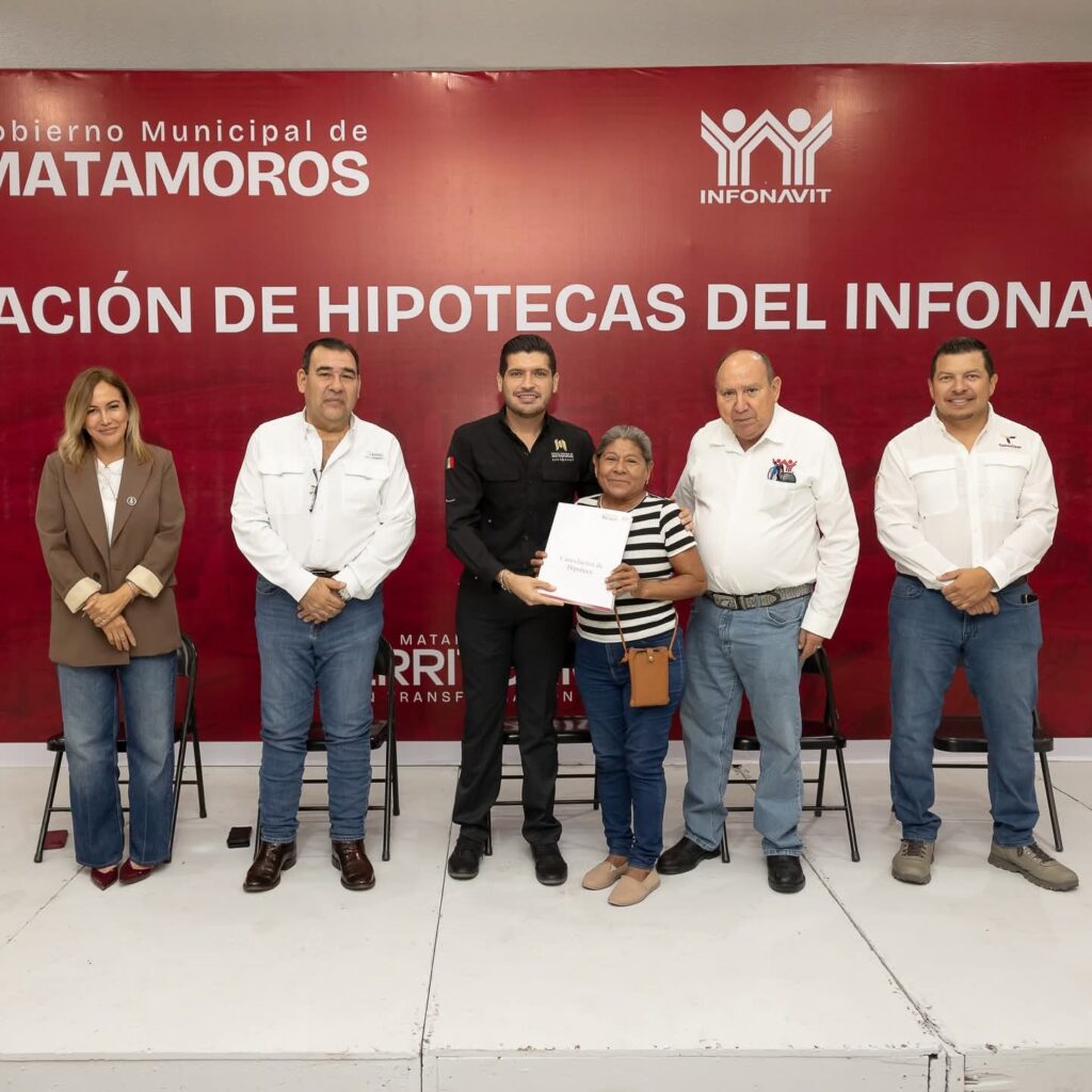 H. Matamoros, Tamaulipas.- El alcalde de Matamoros, Beto Granados, encabezó este miércoles un importante evento en el que se constató la cancelación de cerca de mil hipotecas del Instituto del Fondo Nacional de la Vivienda para los Trabajadores (Infonavit). Acompañado por el gerente del organismo en la localidad, Víctor Jaime López Guajardo, el mandatario destacó el respaldo del Gobierno de México para brindar seguridad patrimonial a las familias matamorenses.