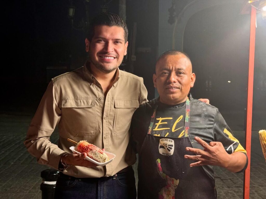 • Además el presidente municipal aprovechó para disfrutar de un elote de su tocayo Beto, un clásico de este emblemático lugar.