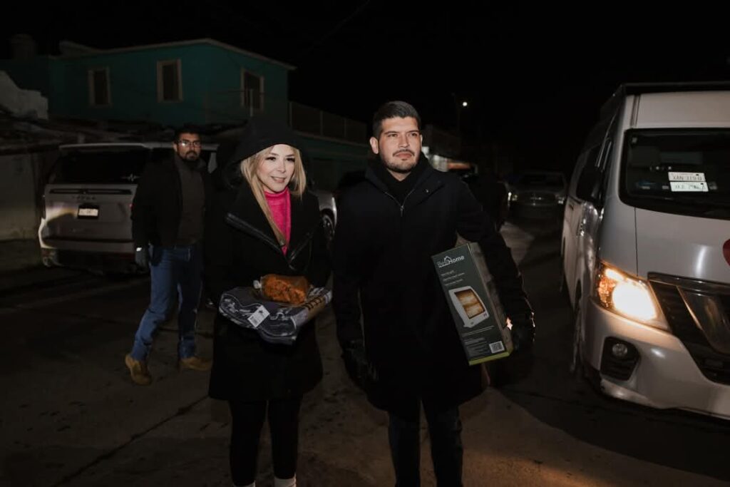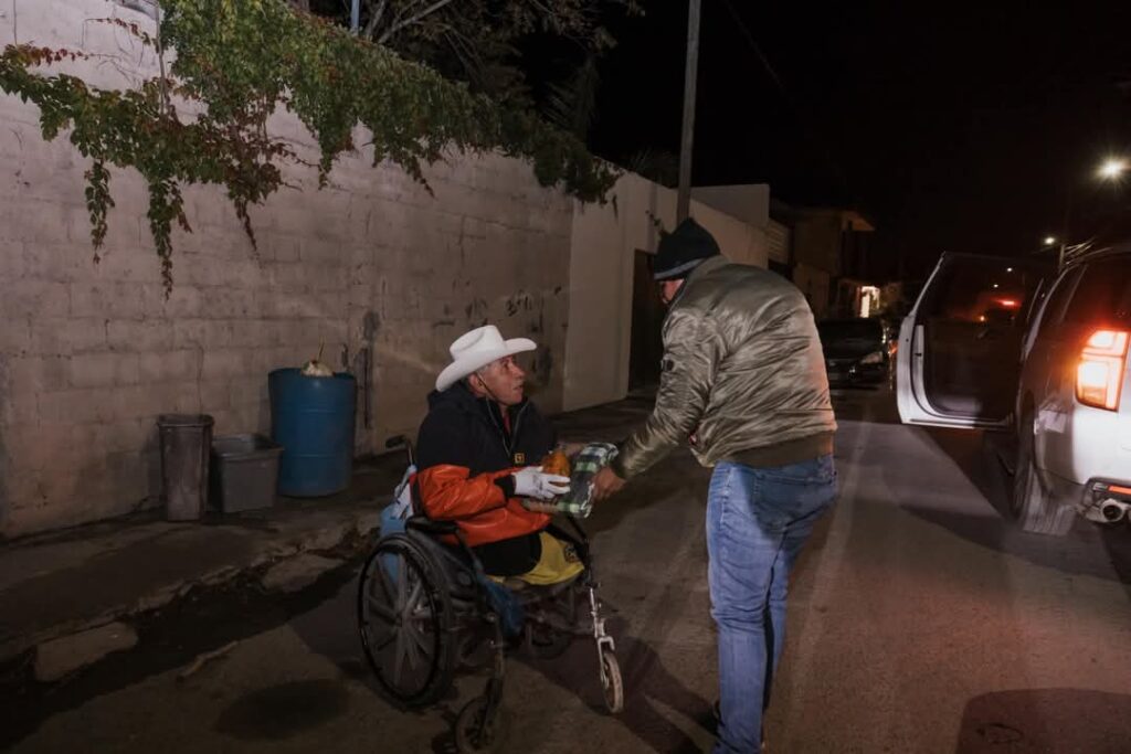 La entrega incluyó calentadores, cobijas y cenas calientes, beneficiando a decenas de personas en colonias como Treviño Zapata, Modelo, Popular, Vicente Guerrero y Valle Encantado.