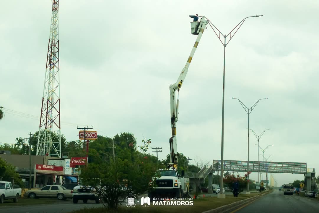 H. Matamoros, Tamaulipas.- Con el firme compromiso de mejorar la calidad de vida de los matamorenses, el Gobierno Municipal, a través del área de Alumbrado Público, trabaja de manera permanente en la atención y rehabilitación del sistema de iluminación en distintos sectores de la ciudad.
