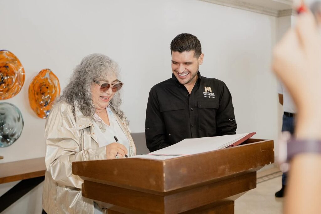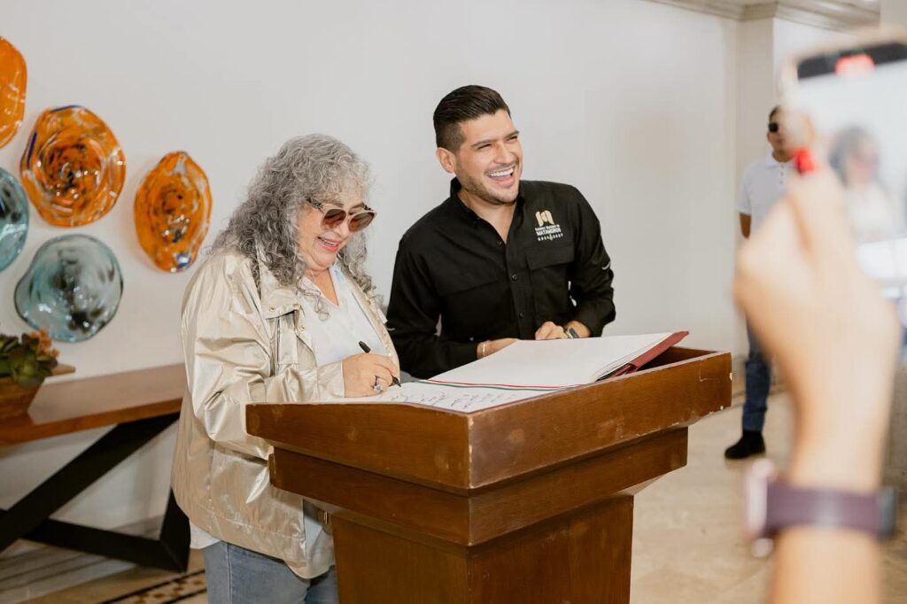 H. Matamoros, Tamaulipas.- La reconocida cantante Amanda Miguel firmó el Libro de huésped distinguido de Matamoros, gesto con el que expresó su agradecimiento por el cariño y las muestras de afecto recibidas durante su presentación en el cierre del Festival Internacional de Otoño.