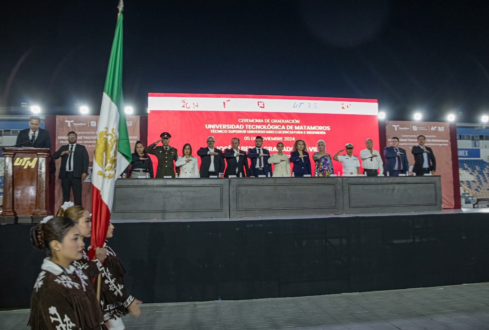 Matamoros, Tamaulipas.- En una ceremonia llena de emociones el alcalde Alberto Granados Fávila apadrino la Generación 2024 de la Universidad Tecnológica de Matamoros (UT) integrada por diferentes carreras universitarias.