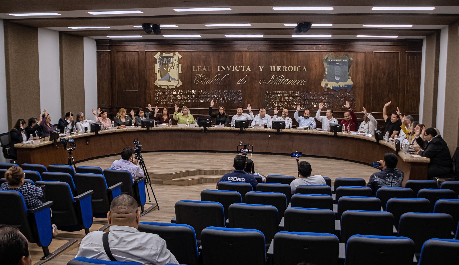 Matamoros, Tamaulipas.- El Republicano Ayuntamiento de Matamoros aprobó por unanimidad el presupuesto de Egresos 2025 y la integración del comité de transparencia en la cuarta sesión extraordinaria de cabildo encabezada por el presidente municipal Alberto Granados Fávila.