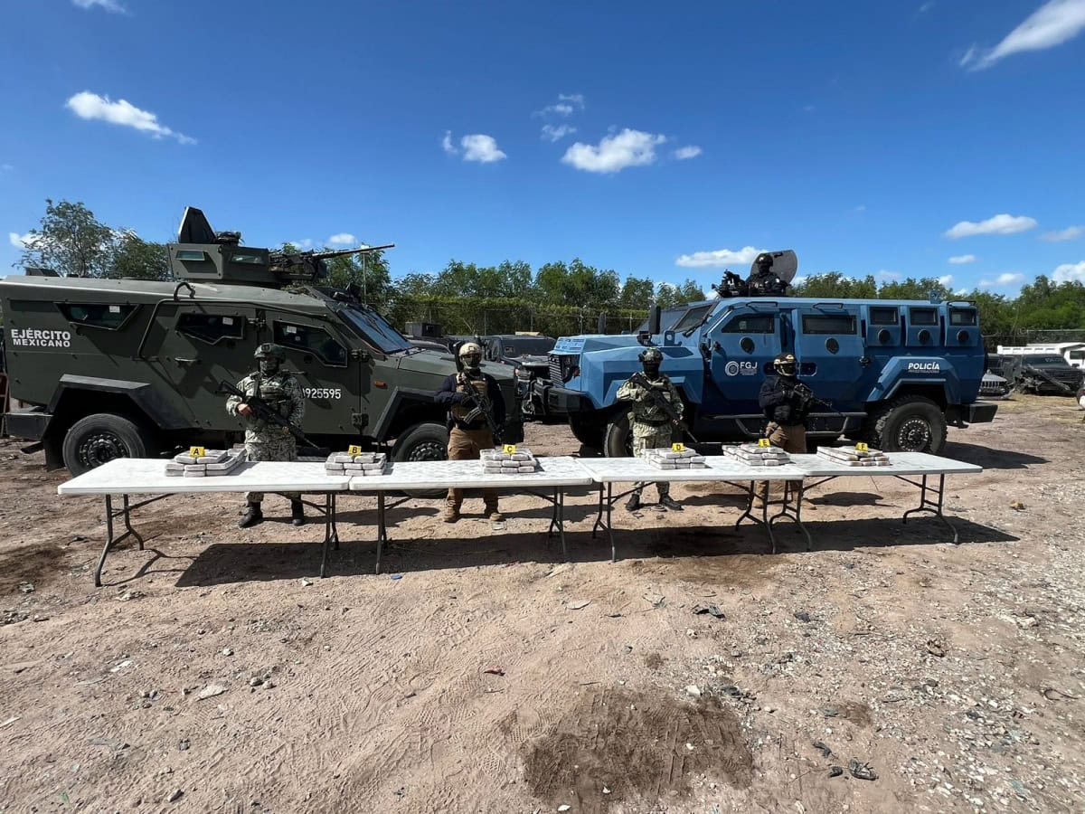 Cuéllar Montoya explicó que, en una acción conjunta, policías de Investigación de la Fiscalía General de Justicia de Tamaulipas y elementos de la Octava Zona Militar de la Secretaría de la Defensa Nacional realizaron el aseguramiento de 84 paquetes con sustancia blanca, que se encontraban escondidos dentro de bloques de cemento en una plataforma.