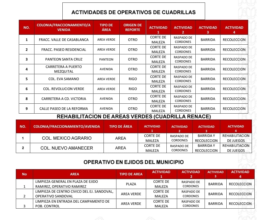 El Gobierno de Beto Granados estará trabajando en los siguientes puntos de la ciudad para dar solución a los problemas que por años fueron ignorados. Si detectas aguas negras o fugas en tu colonia; haz tu reporte al 868 150 2000.