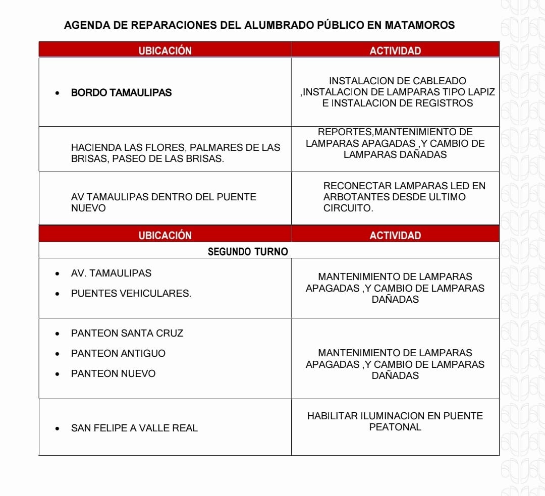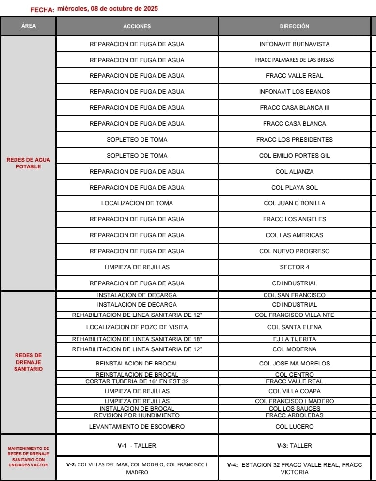 Agenda de reparaciones de fugas de Agua Potable y mantenimiento del Drenaje Sanitario en Matamoros