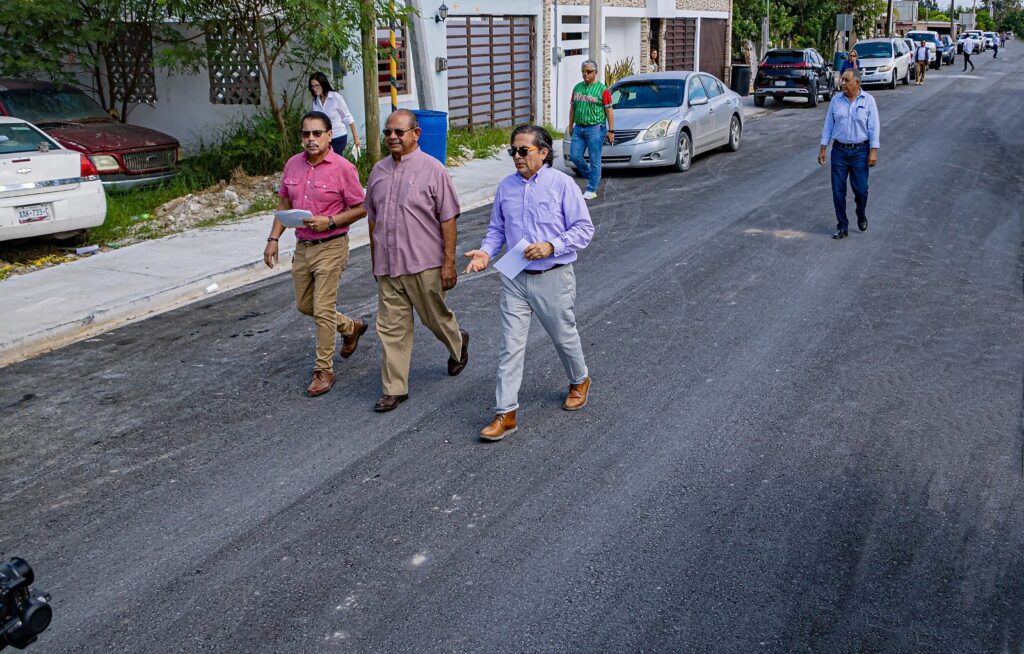 Durante el recorrido que realizó acompañado por el Secretario de Desarrollo Urbano y Ecología, Samuel Vega García, el Presidente Municipal atestiguó los trabajos de pavimentación realizados en las colonias: Campestre del Río 1, Lauro Villar y Electricistas Sur.