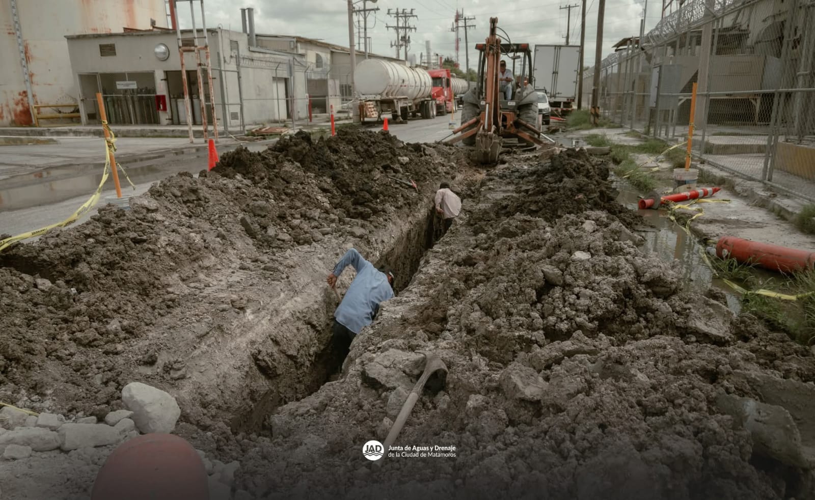 H. Matamoros, Tamaulipas.— El Gobierno Municipal, a través de la Junta de Aguas y Drenaje de Matamoros, continúa trabajando activamente en la rehabilitación de la red de drenaje sanitario en el Parque Industrial Cylsa, con el objetivo de mejorar los servicios básicos en beneficio del sector productivo de la ciudad.