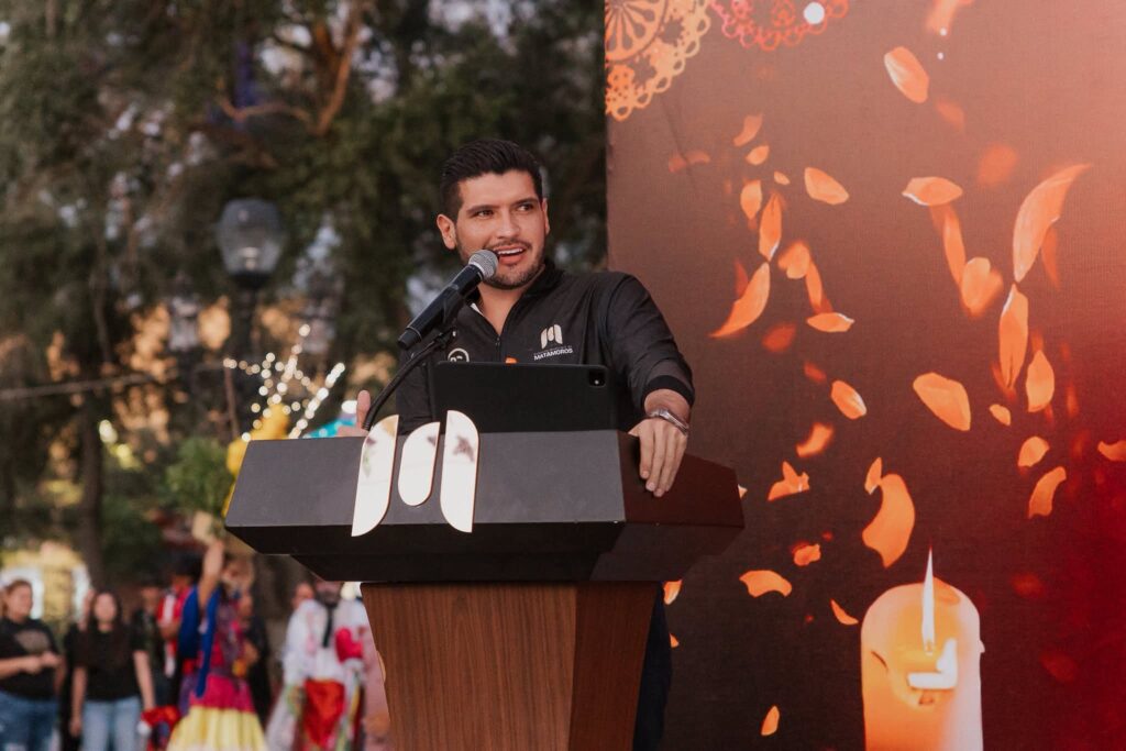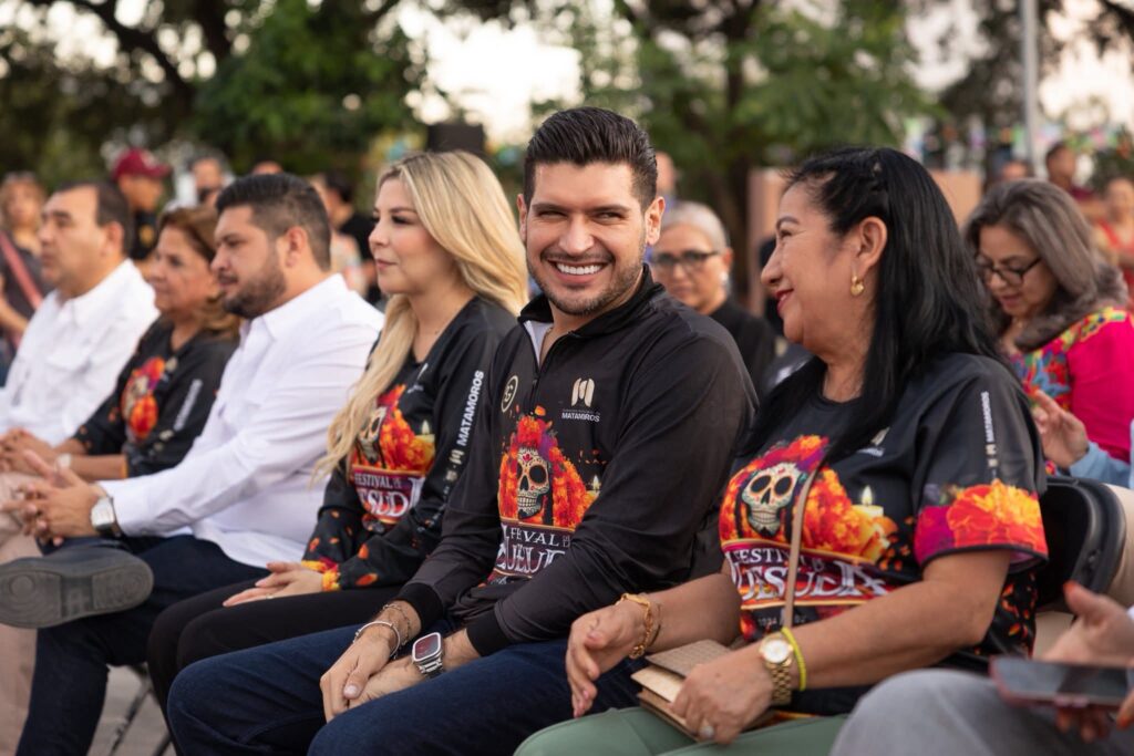 H. Matamoros, Tamaulipas.- El presidente municipal Beto Granados encabezó la inauguración del Festival de La Huesuda 2025, un evento que llena de color, arte y tradición las calles de Matamoros, reuniendo a cientos de familias en torno a las celebraciones del Día de Muertos.