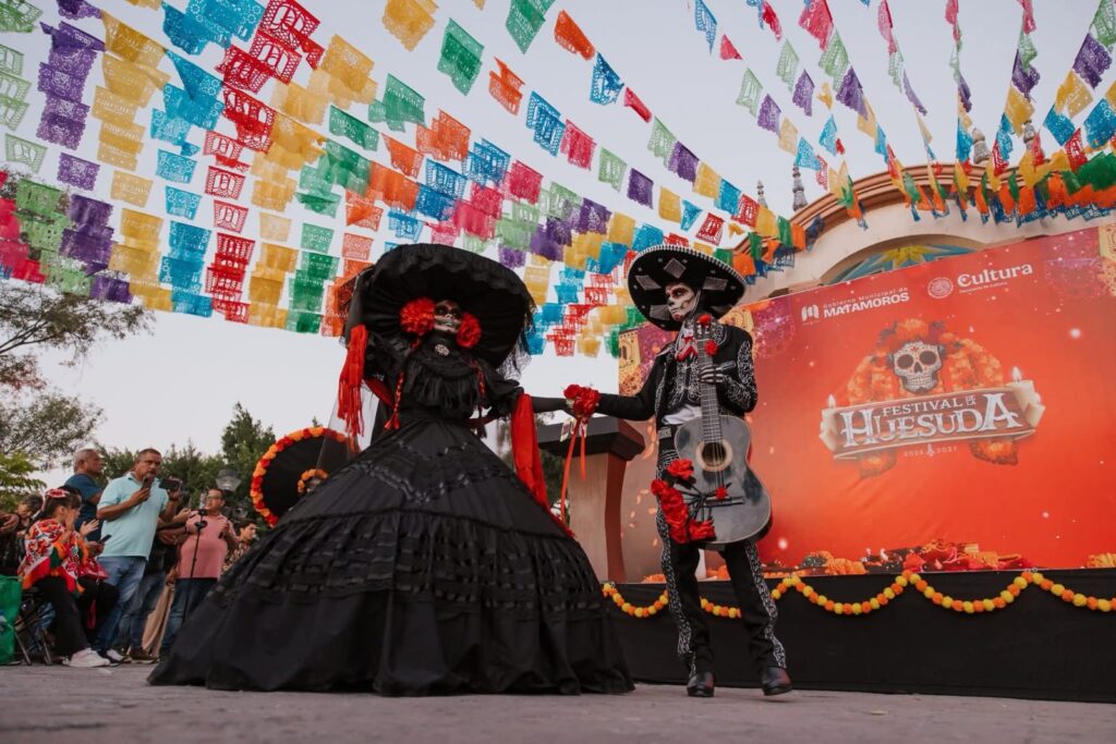 Matamoros celebró con orgullo el inicio del Festival de la Huesuda 2025, la plaza principal se llenó de color, tradición y arte con actividades como el Concurso de Catrín y Catrina, danzas, proyecciones, música y el emotivo encendido del tapete de la Huesuda.