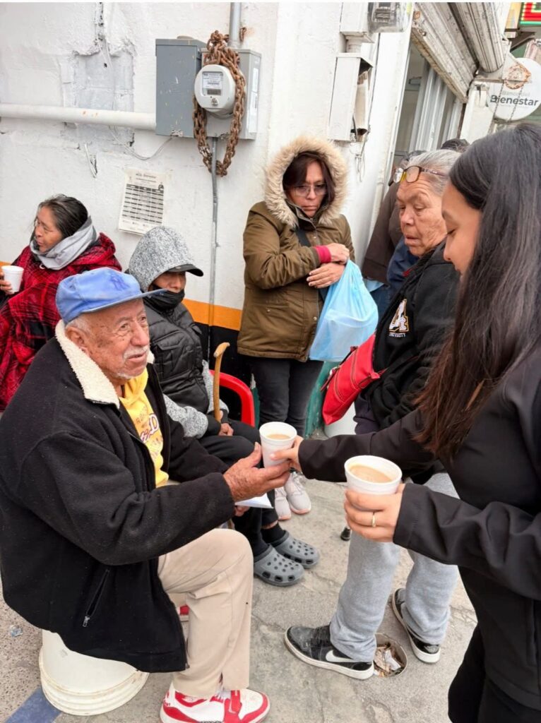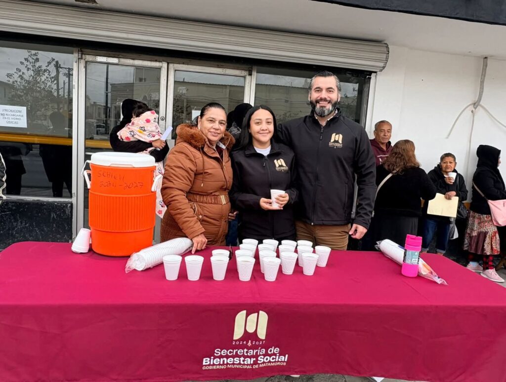 H. Matamoros, Tamaulipas.- Ante el descenso de las temperatura que se registró durante esta semana, la Secretaría de Bienestar Social implementó una acción de apoyo para las y los adultos mayores que acuden a los Bancos del Bienestar, brindándoles café caliente durante estos días de frío.