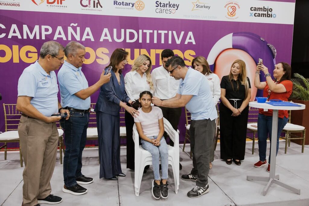 Gracias a la colaboración de la Fundación Oigamos Juntos, Starkey Care, Club Rotario Matamoros Industrial, CRI Matamoros y el Sistema DIF Matamoros, se siguen rompiendo barreras de la audición y regalando esperanza a las familias que más lo necesitan.