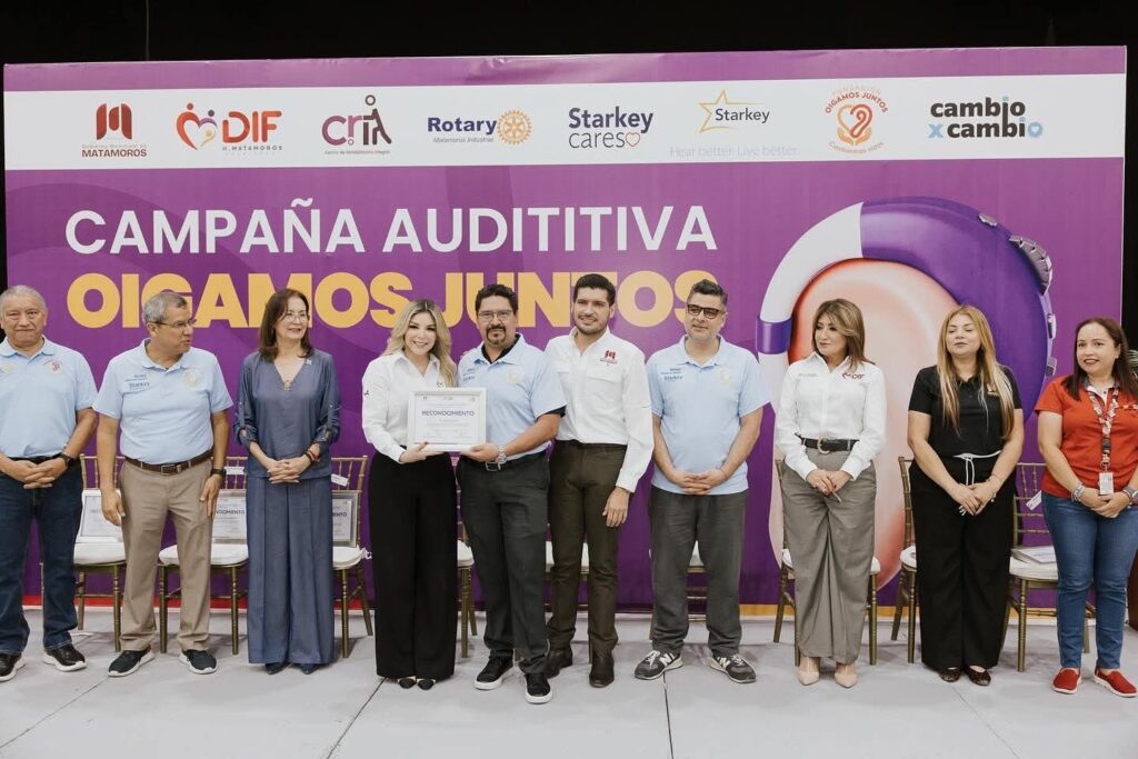 En este gran esfuerzo estuvieron presentes Anita de Granados, Presidenta del Sistema DIF Matamoros; Julia Fávila de Granados, Presidenta del Voluntariado DIF Matamoros; William F. (Bill) Austin, Fundador y Presidente de Starkey; Alejandro Valdez, Director de Starkey México; Miguel Dávila, Presidente del Club Rotario Matamoros Industrial; y Guadalupe Hernández Danache, Presidente de la Fundación Oigamos Juntos.