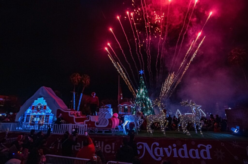 Al subirse la palanca que encendió las luces del árbol navideño también hizo que se iluminara el cielo con un gran espectáculo de fuegos artificiales que cautivaron a grande y pequeños.