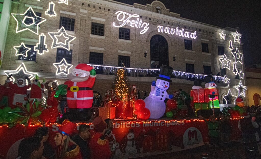 Las diversas secretarías del Gobierno de Matamoros e instituciones de educación básica, superior y medio superior regalaron a las familias bailes, vestuarios navideños, carros alegóricos y dulces en cada una de sus presentaciones.