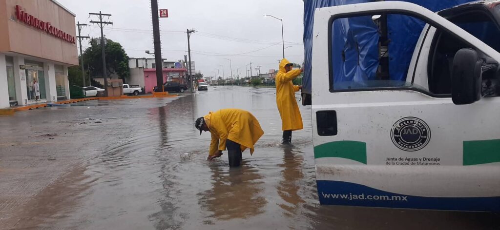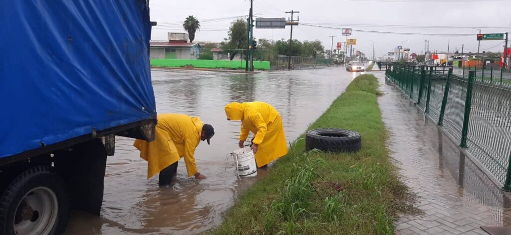 El Gobierno de Matamoros trabaja de forma permanente con limpieza de rejillas, bocas de tormenta y cruces de drenes, revisión de compuertas de control en el Río Bravo, monitoreo de pluviómetros, acarreo e instalación de equipos de bombeo, y supervisión de puntos vulnerables para reducir los efectos de las lluvias.