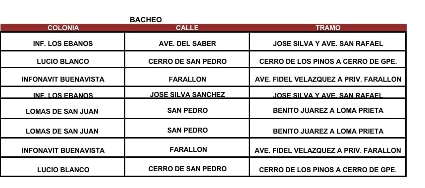 El Gobierno de Beto Granados estará trabajando en los siguientes puntos de la ciudad para dar solución a los problemas que por años fueron ignorados. Si detectas aguas negras o fugas en tu colonia; haz tu reporte al 868 150 2000.