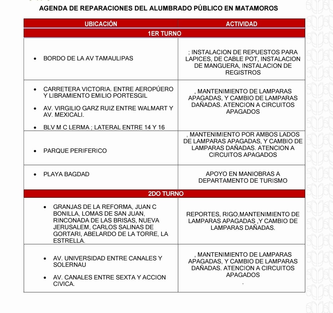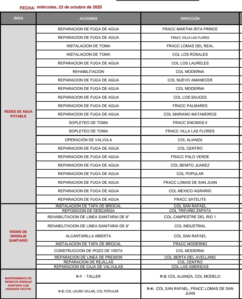 Agenda de reparaciones de fugas de Agua Potable y mantenimiento del Drenaje Sanitario en Matamoros