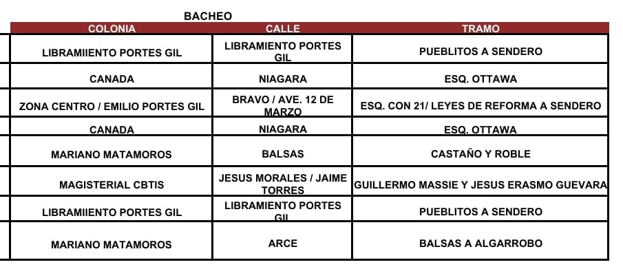 Programa Permanente de Bacheo en Matamoros