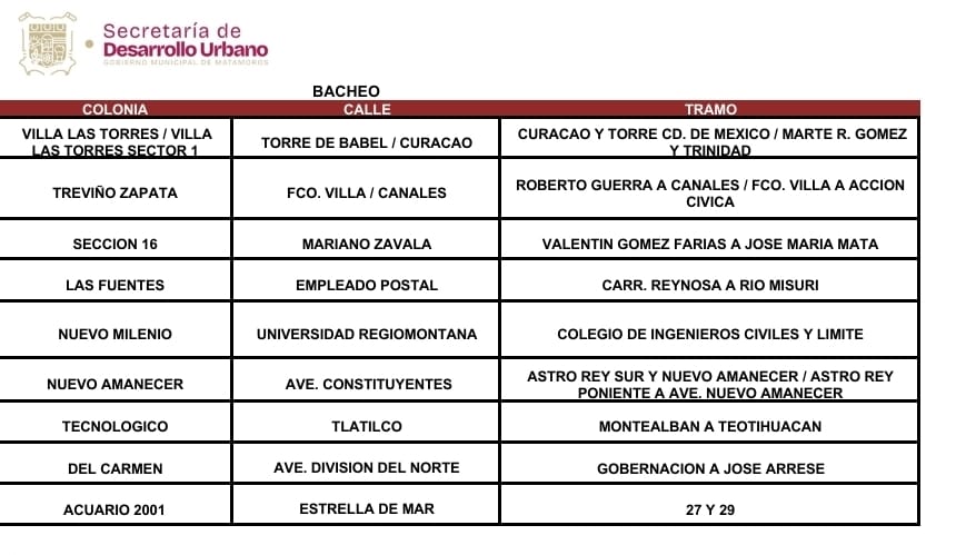 El Gobierno de Matamoros te invita a circular con precaución y paciencia si transitas por las siguientes avenidas: -Calle Sexta9:00 a.m. a 11:00 a.m. Inicio/Término: Blvd. Manuel Cavazos Lerma Término/Inicio: Calle Ignacio Zaragoza -Av. Pedro Cárdenas1:00 p.m. a 3:00 p.m. Inicio: Blvd. Manuel Cavazos Lerma Término: Lib. Emilio Portes Gil -Av. Pedro Cárdenas3:00 p.m. a … Leer más