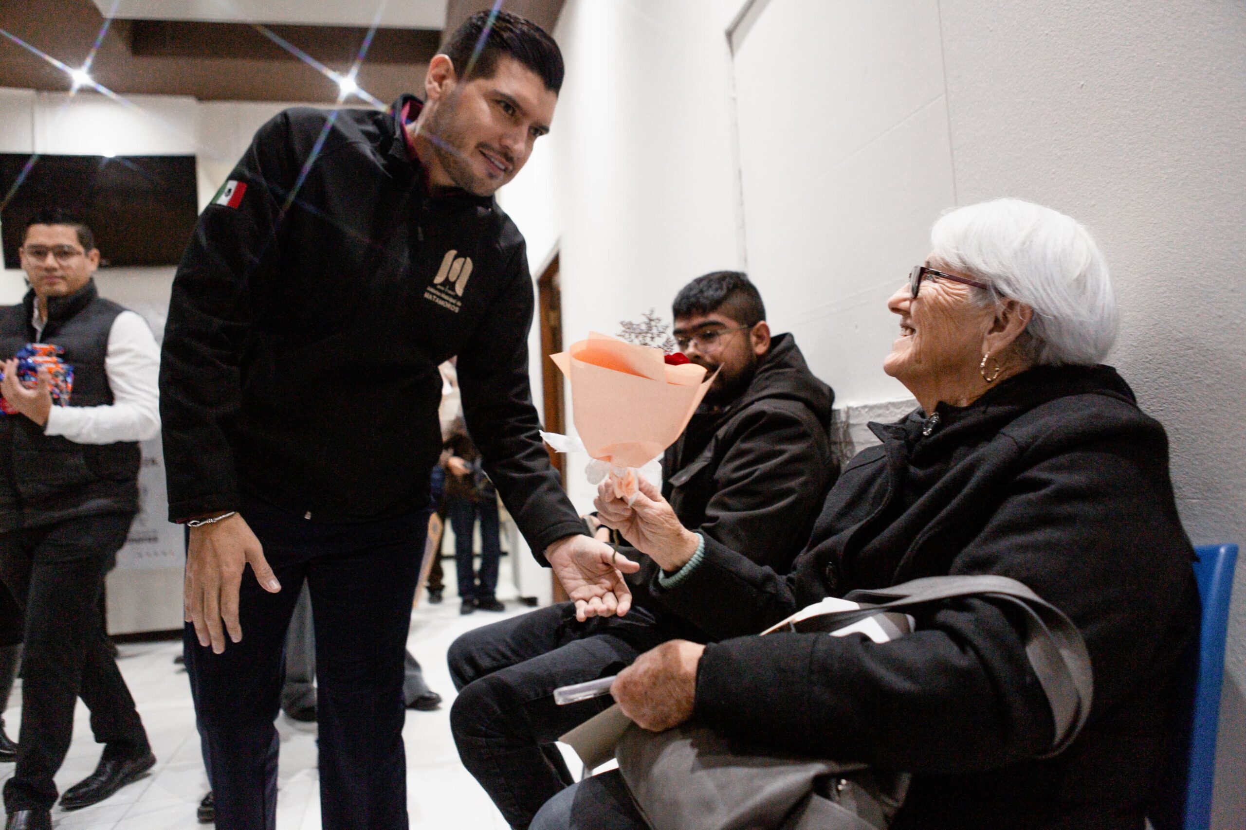 Matamoros, Tamaulipas.- En un gesto de afecto y cercanía con su gente, el alcalde Alberto Granados celebró el “Día del Amor y la Amistad” entregando rosas y paletas de chocolate a trabajadores municipales y ciudadanos que acudieron al Palacio Municipal a realizar algún trámite.