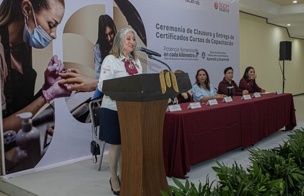 La Directora del Instituto Municipal de la Mujer, Dra. Claudia Alvarado Serna, fue la encargada de dar las palabras de clausura, destacando el impacto transformador de la educación en el desarrollo personal y profesional de las mujeres.