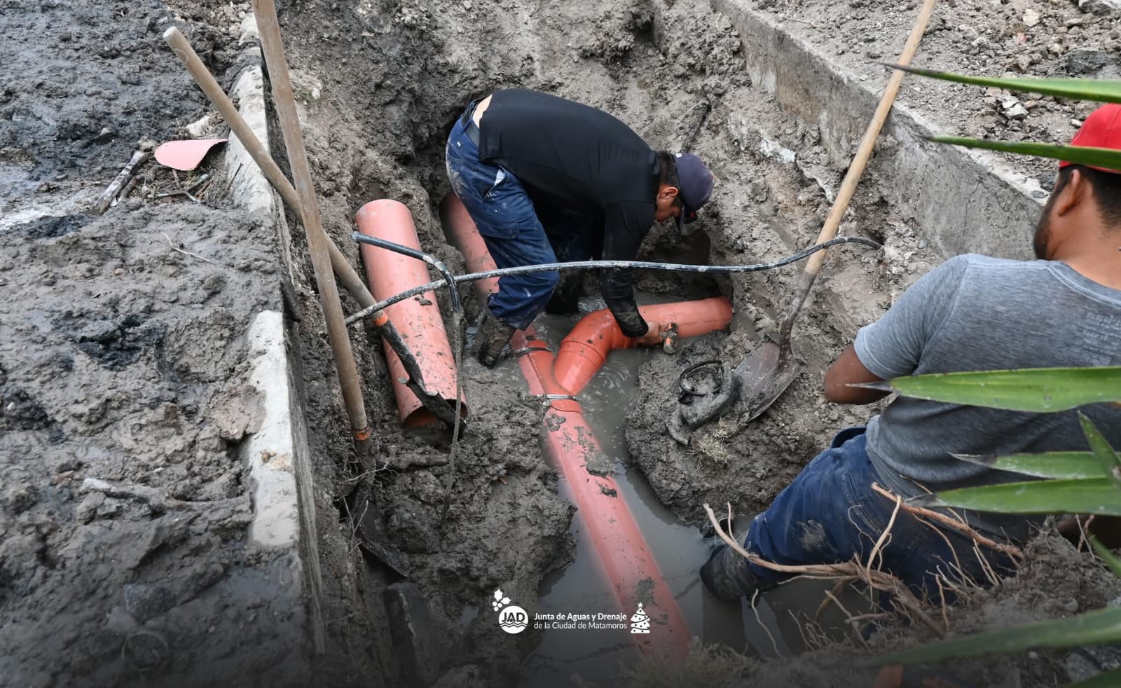 H. Matamoros, Tamaulipas.- Por instrucción del alcalde de Matamoros, Beto Granados, personal de cuadrillas municipales llevó a cabo trabajos de reparación en una línea de drenaje sanitario, como parte de las acciones permanentes para fortalecer los servicios públicos en la ciudad.