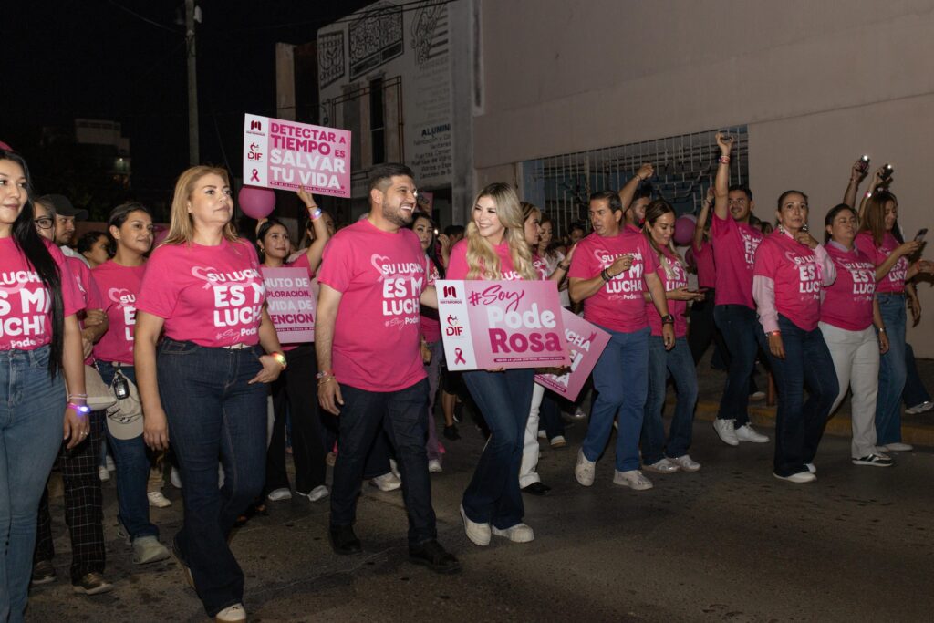 Con mensajes como “Su lucha es mi lucha”, “Detectar a tiempo es salvar tu vida”, “La prevención es amor propio”, “Un minuto de autoexploración, una vida de prevención” y “Explórate, Cuídate, Quiérete” fueron frases que acompañaron al contingente.