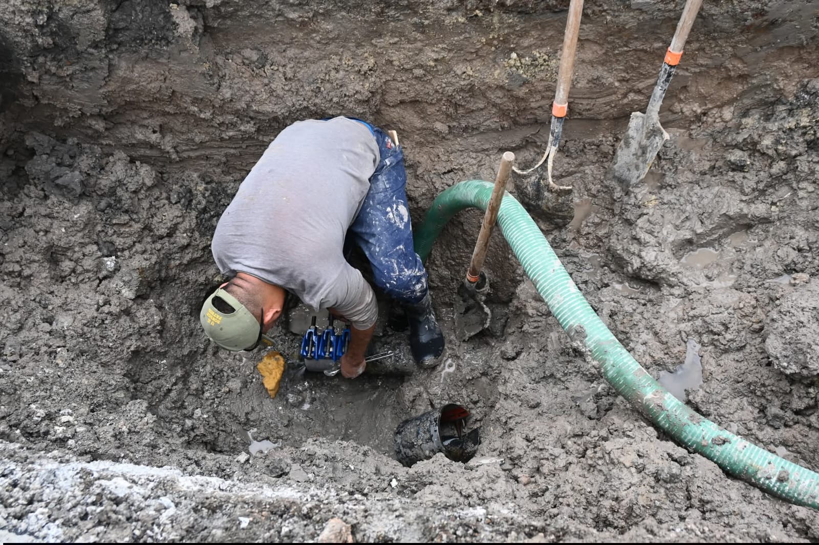 En el lugar se llevó a cabo la colocación de una abrazadera, lo que permitió atender de manera oportuna la fuga, evitar el desperdicio del vital líquido y mejorar el suministro para las familias del sector.