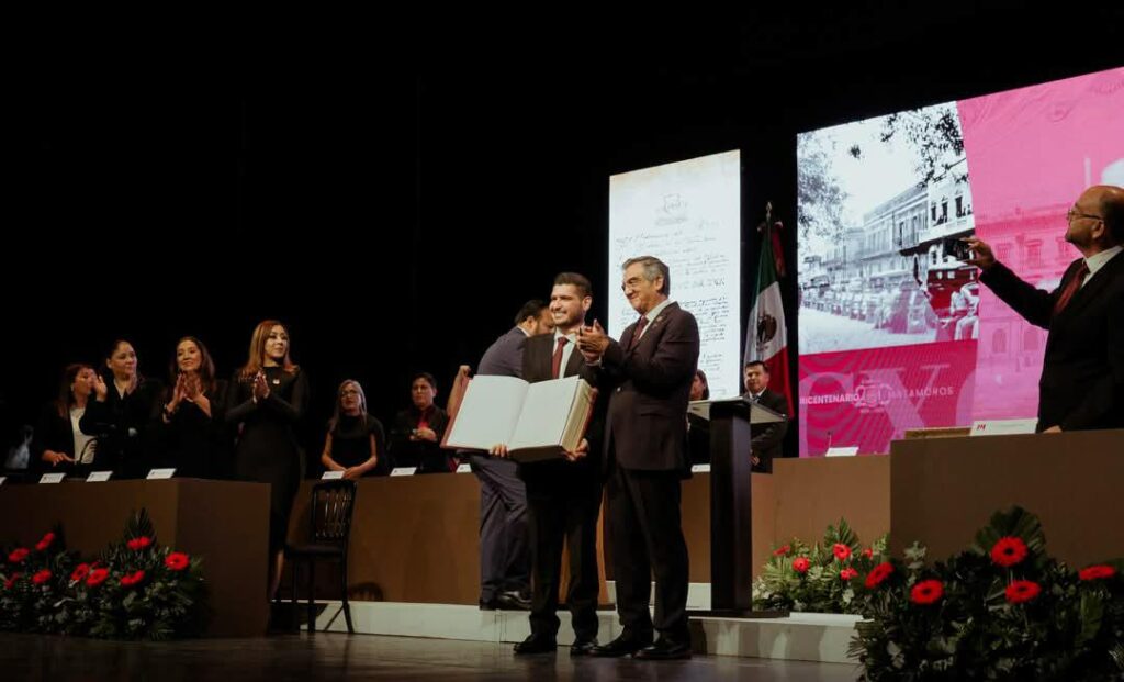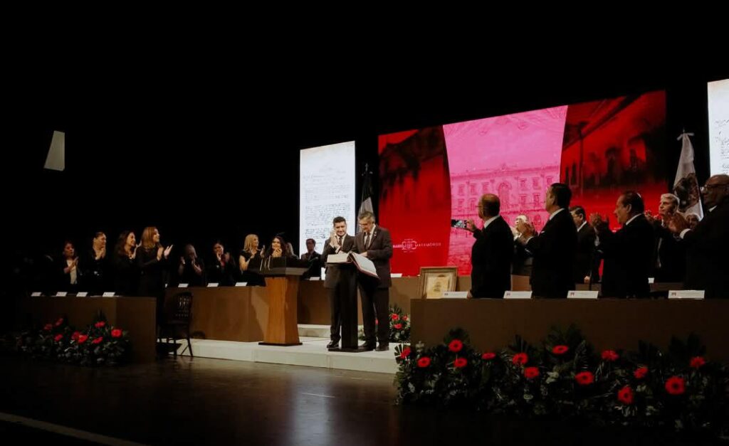 Al término de la sesión solemne se invitó al Gobernador Américo Villarreal a firmar el Libro de Huésped Distinguido, posterior a escuchar su mensaje en el que destacó el valor que tiene esta ciudad, los retos que ha enfrentado y su compromiso con los matamorenses para hacer que la ciudad se siga transformando de manera humanista.