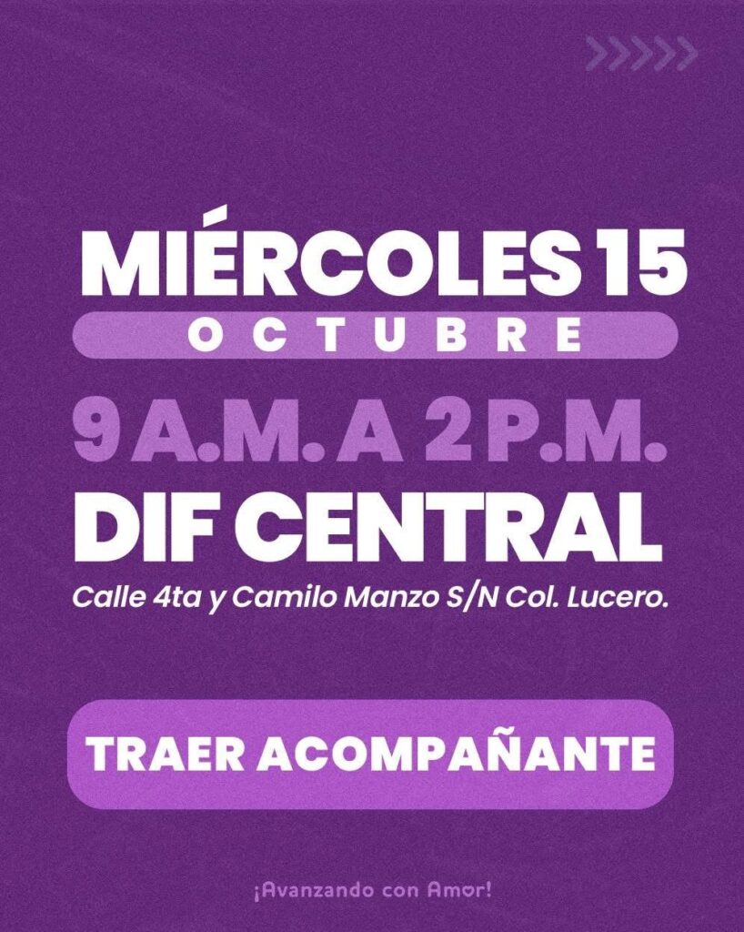 Las valoraciones se llevarán a cabo este miércoles 15 de octubre en las instalaciones de la oficina Central, ubicada en Calle 4ta y Camilo Manzo s/n Col. Lucero, atendiendo a los pacientes a partir de las 09:00 de la mañana.