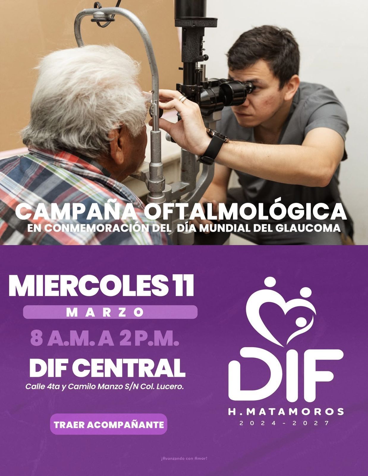 Dando seguimiento a las acciones que promuevan el cuidado de la salud visual, el Sistema DIF Matamoros que preside la Lic. Ana Ariceaga de Granados, en coordinación con médicos especialistas en oftalmología, invitan a la población a sumarse a la campaña oftalmológica “Ojos que Si Ven, Corazón que Si Siente” con la finalidad de detectar patologías visuales, así como prevenir y ofrecer tratamientos o alternativas que mejoren la visión.