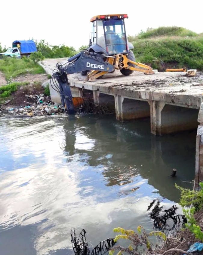 Recientemente se realizaron trabajos con maquinaria en el cruce conocido como “Los fierros”, correspondiente al dren Las Vacas, el cual ya conduce las aguas provenientes del dren 20 de Noviembre. En este punto se retiró una gran cantidad de basura acumulada que obstruía el paso del agua.