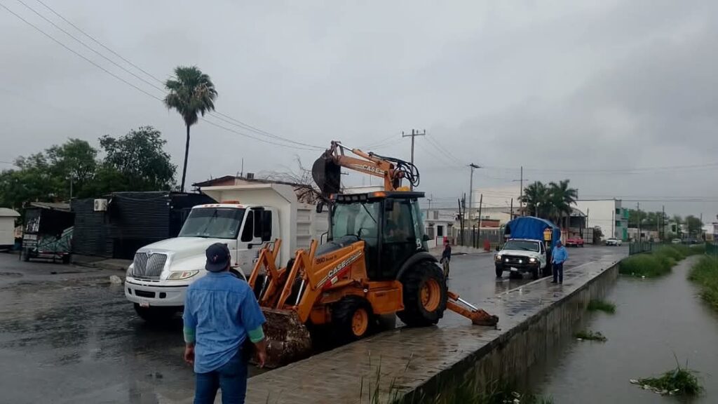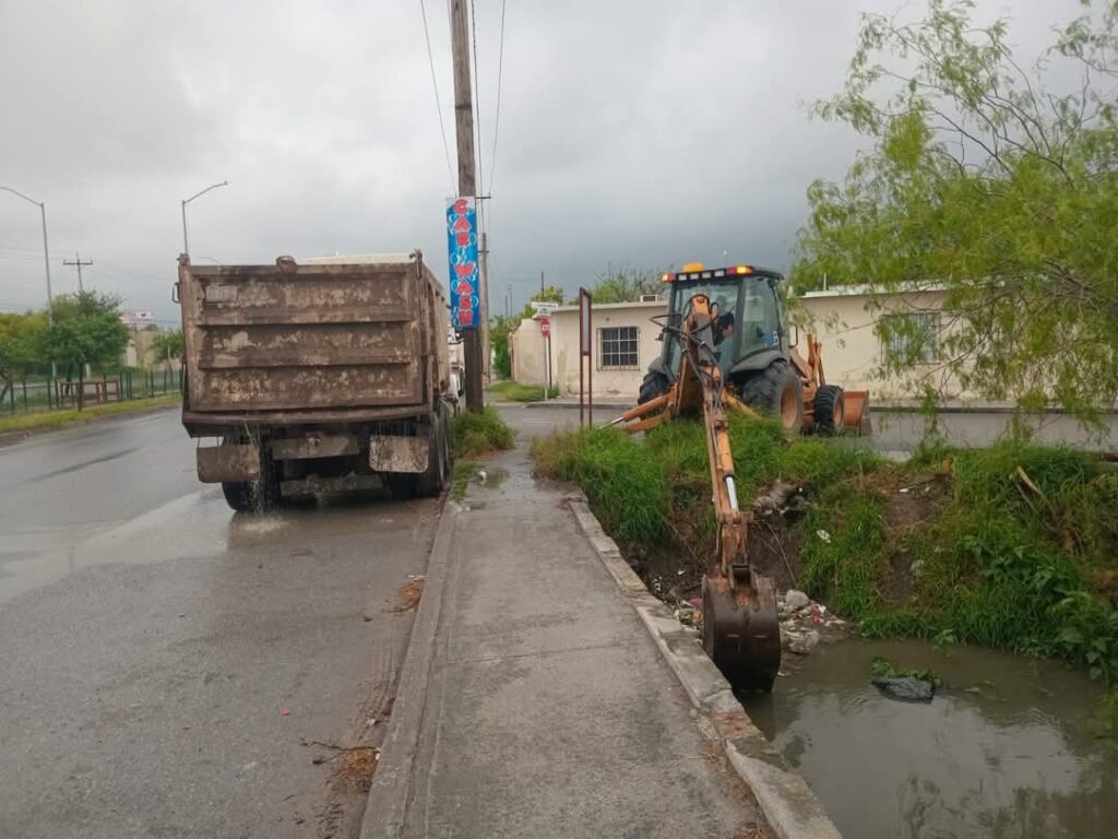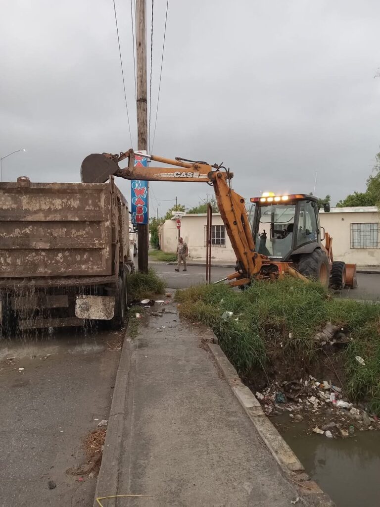 H. Matamoros, Tamaulipas.- Por instrucción del alcalde Beto Granados, personal del municipio continúa con las labores de limpieza en los drenes pluviales, con el objetivo de prevenir inundaciones durante la temporada de lluvias.