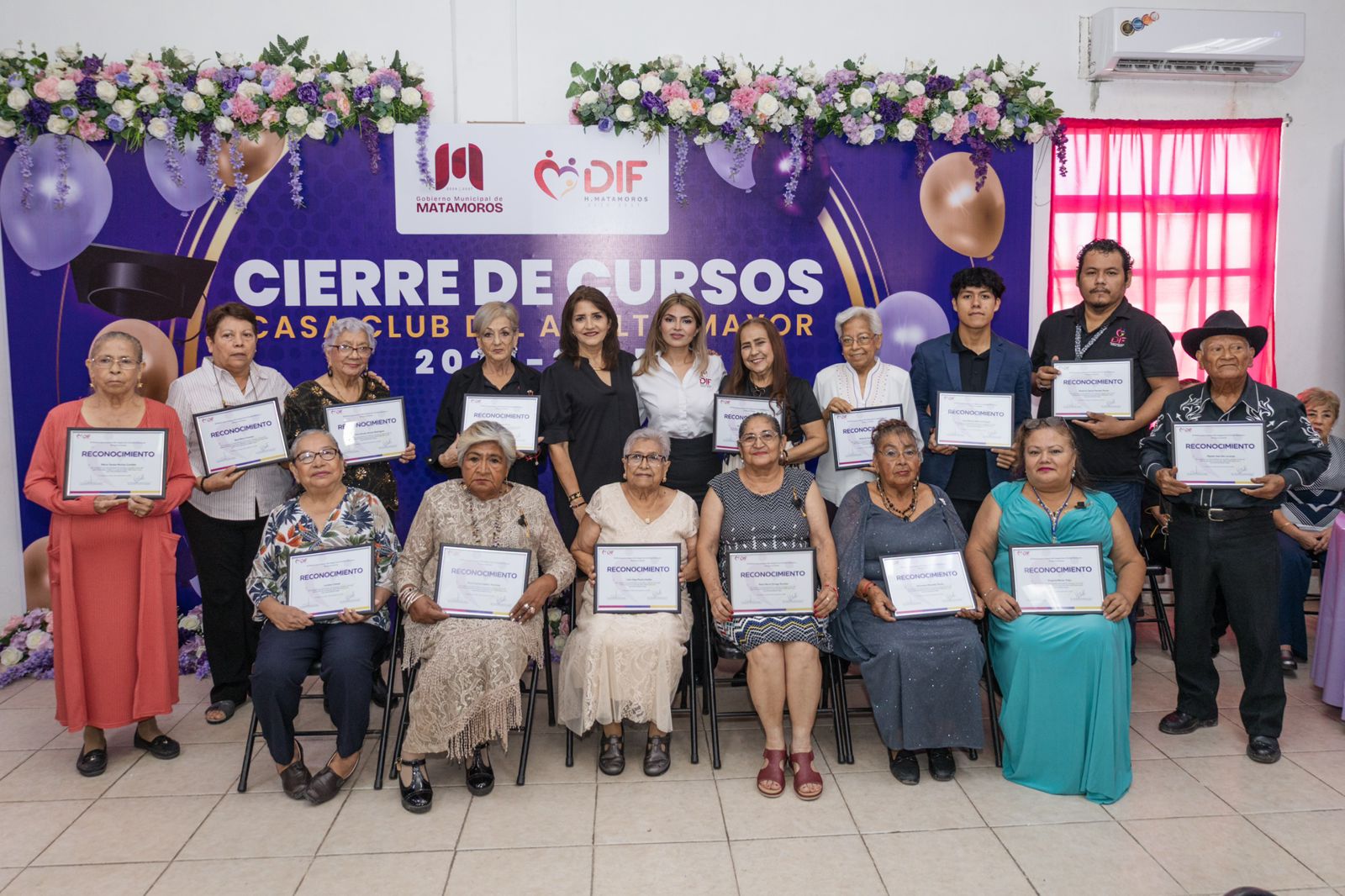 La mañana de este viernes, el Sistema DIF Matamoros que preside la Lic. Ana Ariceaga de Granados, reconoció el empeño y dedicación de los adultos mayores que hoy culminan su ciclo de talleres en la Casa Club del Adulto Mayor, destacando su energía y amor en cada uno de sus aprendizajes en estas capacitaciones.