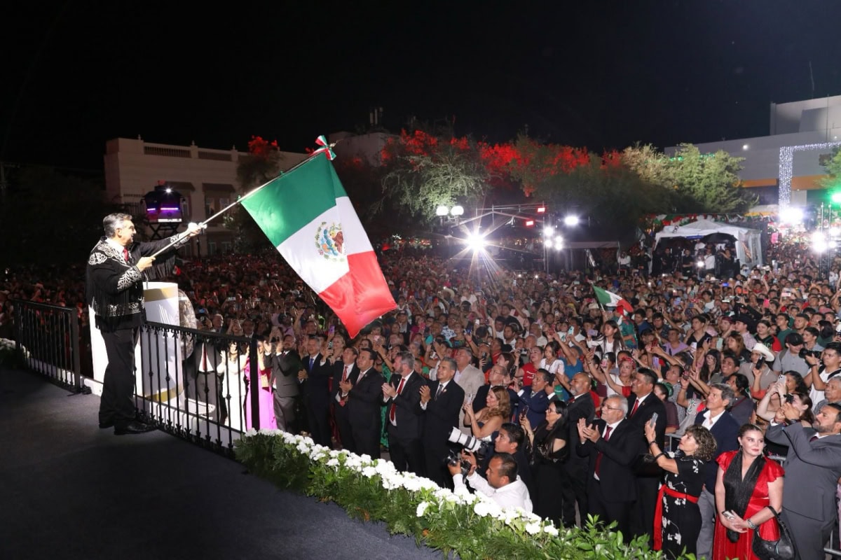 Miles de familias tamaulipecas se congregaron en la Plaza Juárez de esta capital para conmemorar el 215 aniversario del Grito de Independencia, acto encabezado por el gobernador Américo Villarreal Anaya, quien en su arenga vitoreó a nuestros hermanos y hermanas migrantes, a la honestidad y la justicia, y a los independentistas tamaulipecos.
