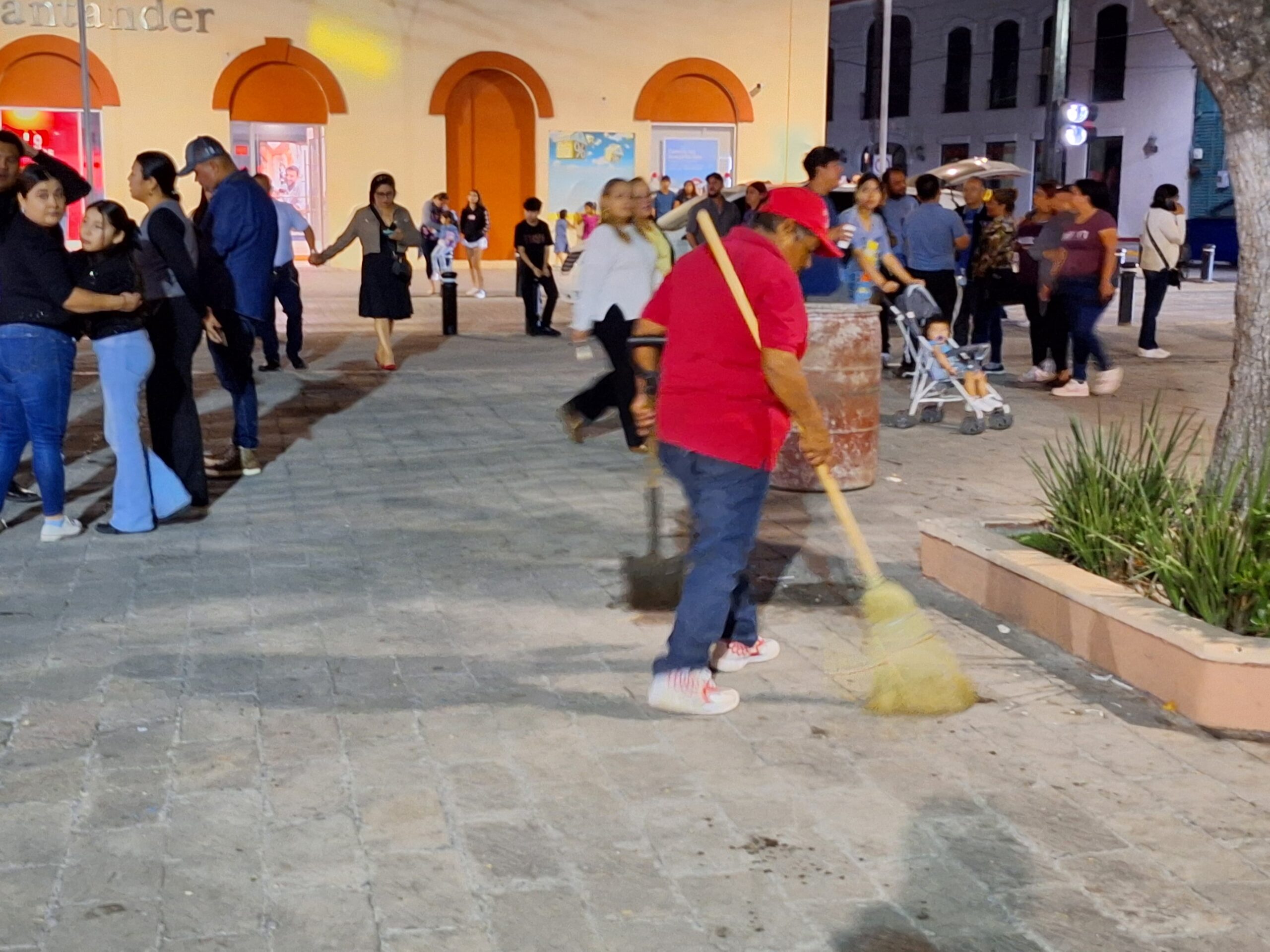 Para garantizar un ambiente limpio, se desplegó una cuadrilla de 12 trabajadores, de los cuales seis recorrieron constantemente la Plaza Principal con un diablito y un bote de basura, mientras que el resto se encargó de recolectar los desechos generados. Además, se instalaron 12 botes de basura en puntos estratégicos para facilitar su disposición adecuada.