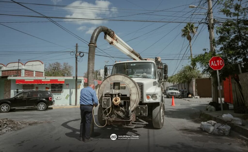 H. Matamoros, Tamaulipas.- Por instrucciones del Alcalde Beto Granados, personal de la Junta de Aguas y Drenaje de Matamoros continúa con trabajos intensivos para mejorar el sistema de drenaje en diversos sectores de la ciudad.