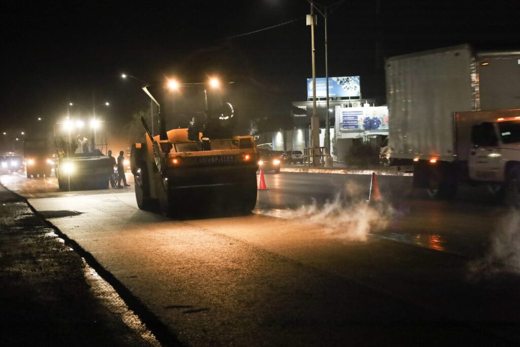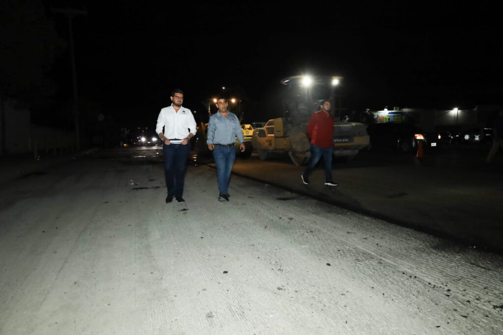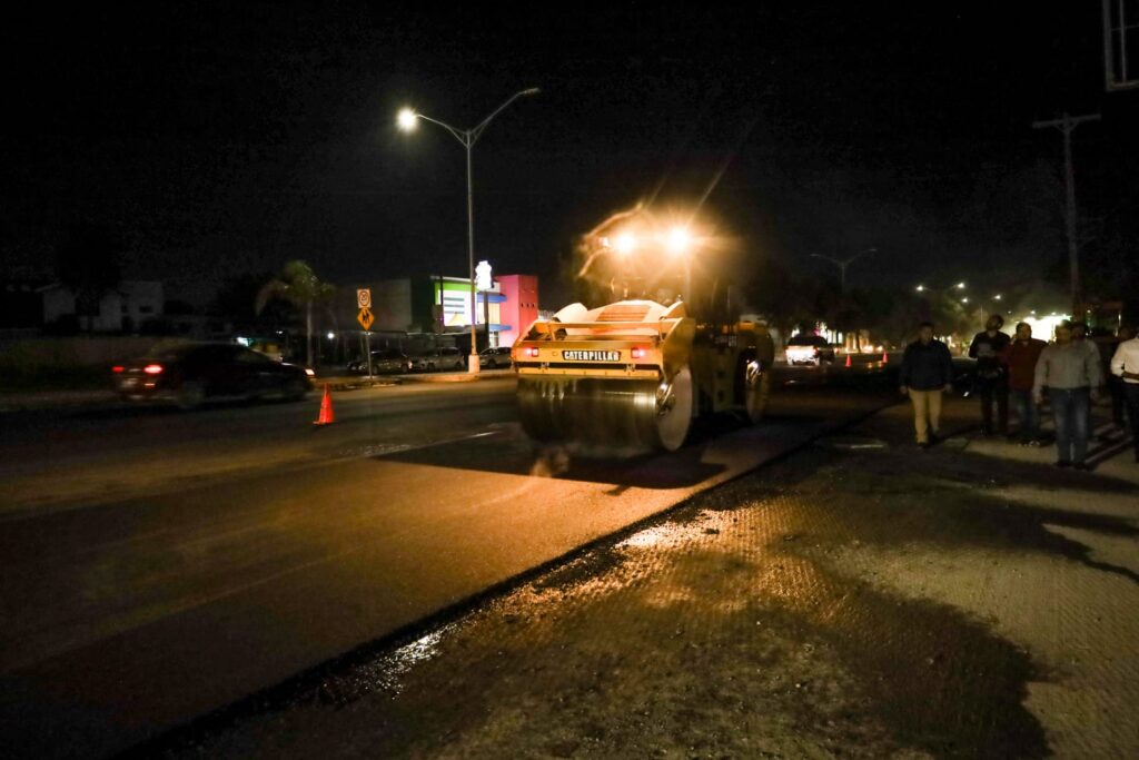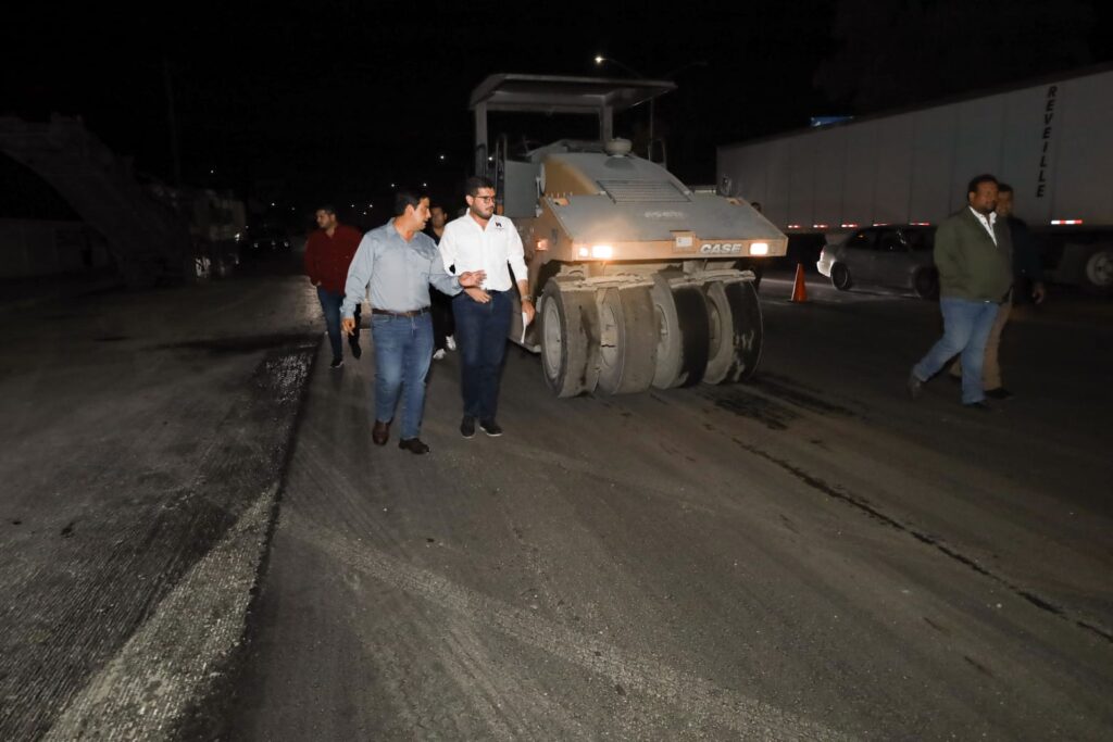Matamoros, Tamaulipas.- Comprometido en cumplir con su compromiso de transformar a Matamoros, el alcalde Alberto Granados Fávila, recorrió esta noche el boulevard Manuel Cavazos Lerma para supervisar los trabajos de rehabilitación asfáltica y la construcción de un cruce peatonal en esta significativa vía.