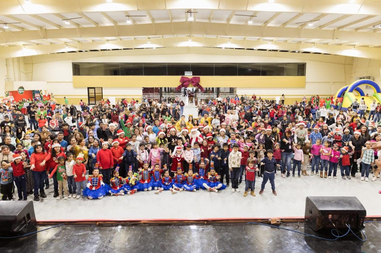 Con el firme compromiso de fortalecer la unión familiar y llevar un mensaje de amor y paz, el Sistema DIF Matamoros realizó con gran éxito las celebraciones navideñas con “La Fábrica de Santa: La Magia de Compartir”, beneficiando a más de 2,200 niñas y niños de las colonias Casa Blanca, Ejido Santa Adelaida, Mundo Nuevo, así como las canchas de la Colonia Independencia.