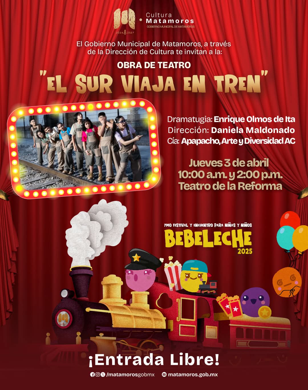 La invitación es cortesía del Gobierno Municipal, que ha elegido el Teatro de la Reforma como el escenario ideal para dar vida a la mágica obra “El Sur Viaja en Tren”, teniendo dos funciones: a las 10:00 y 14:00 horas.
