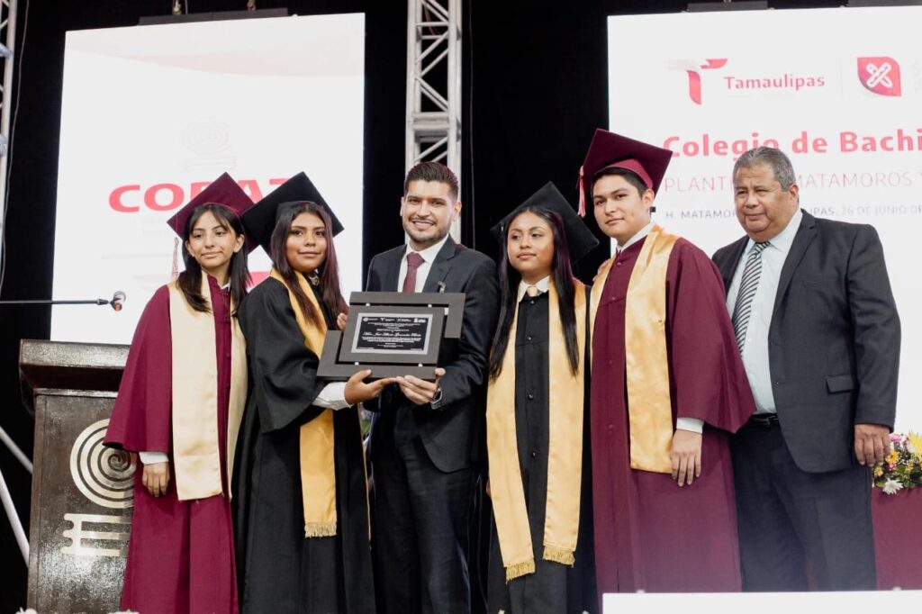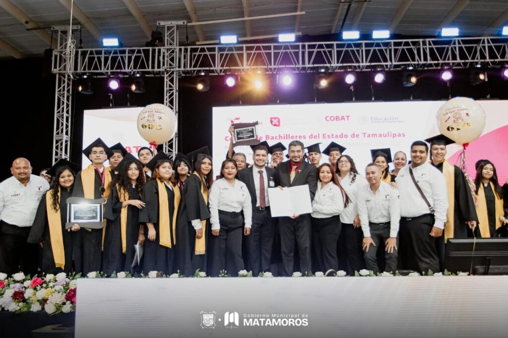 H. Matamoros, Tamaulipas.- El presidente municipal, Beto Granados, tuvo el honor de apadrinar a la generación egresada del Colegio de Bachilleres de Tamaulipas (COBAT) Plantel 02. Durante la emotiva ceremonia de graduación, expresó su agradecimiento por la invitación y destacó la importancia de acompañar a esta gran generación en un momento tan significativo para sus vidas.