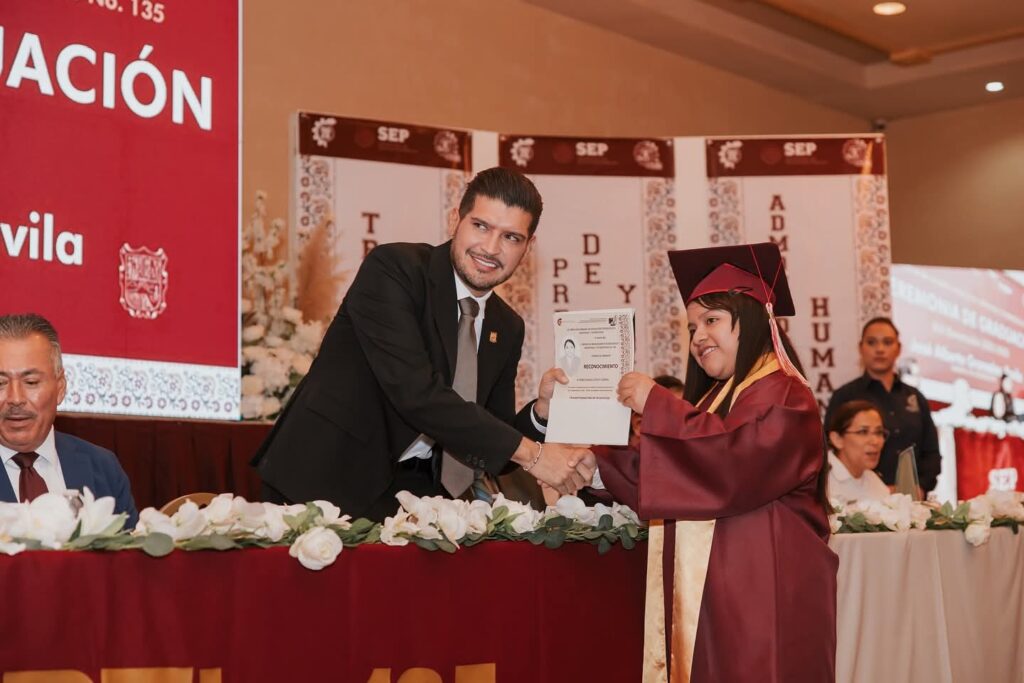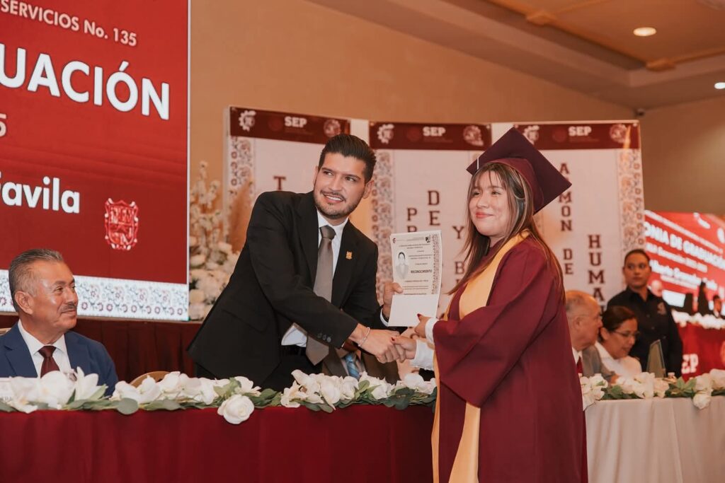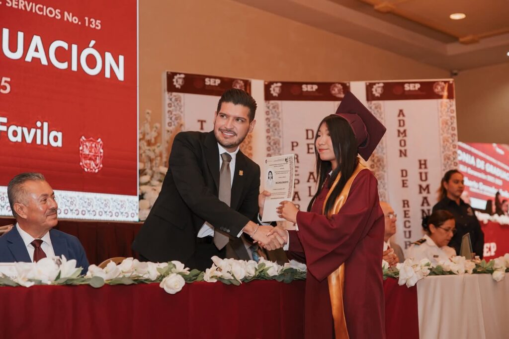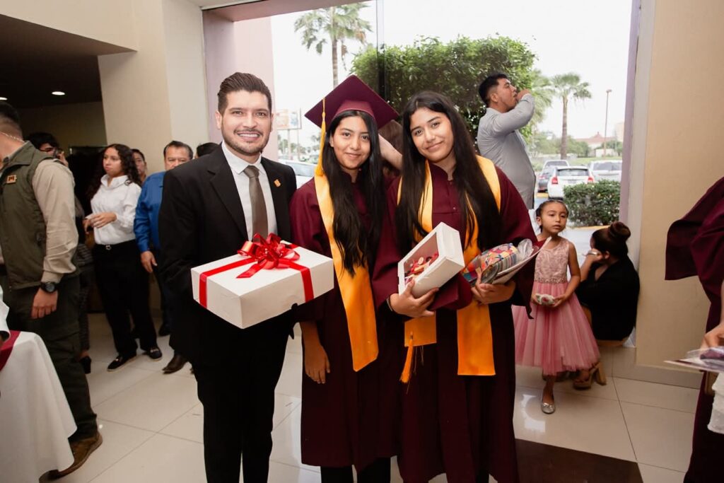 Durante las ceremonias de graduación, el alcalde expresó su agradecimiento al maestro Rolando Cortés Delgado, director del plantel, por la invitación a formar parte de este momento tan significativo para la comunidad educativa. “Fue un honor acompañar a mis ahijados en este día. Felicidades a todos los graduados. El futuro está en sus manos y sé que lograrán grandes cosas”, manifestó Granados.