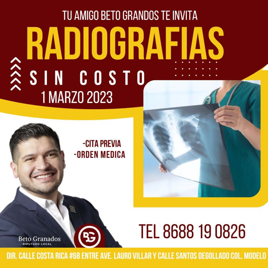 El diputado local Alberto Granados te invita para que aproveches la jornada de radiografías gratuitas este 1 de marzo.