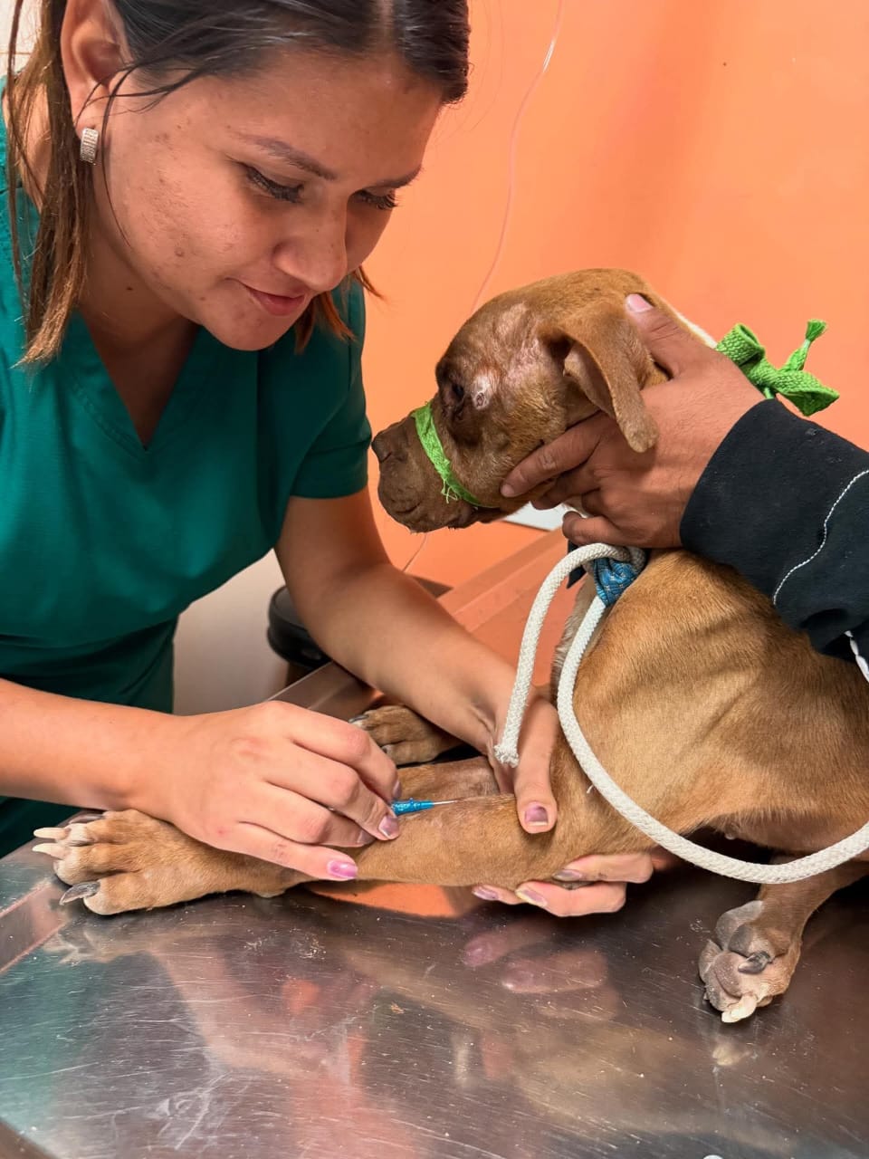 Ambos perritos recibieron tratamiento antiparasitario para eliminar garrapatas, pulgas y ácaros, y se mantienen bajo observación y seguimiento veterinario constante para asegurar su recuperación integral.