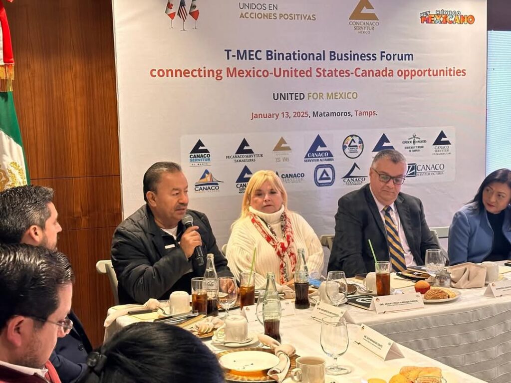 Reunidos en la ciudad de Matamoros Tamaulipas La Confederación de Cámaras Nacionales de Comercio, Servicios y Turismo (CONCANA COSERVYTUR) realizo el 5 Foro Binacional de Negocios T-MEC Conectando Oportunidades México Estados Unidos, en la Frontera.