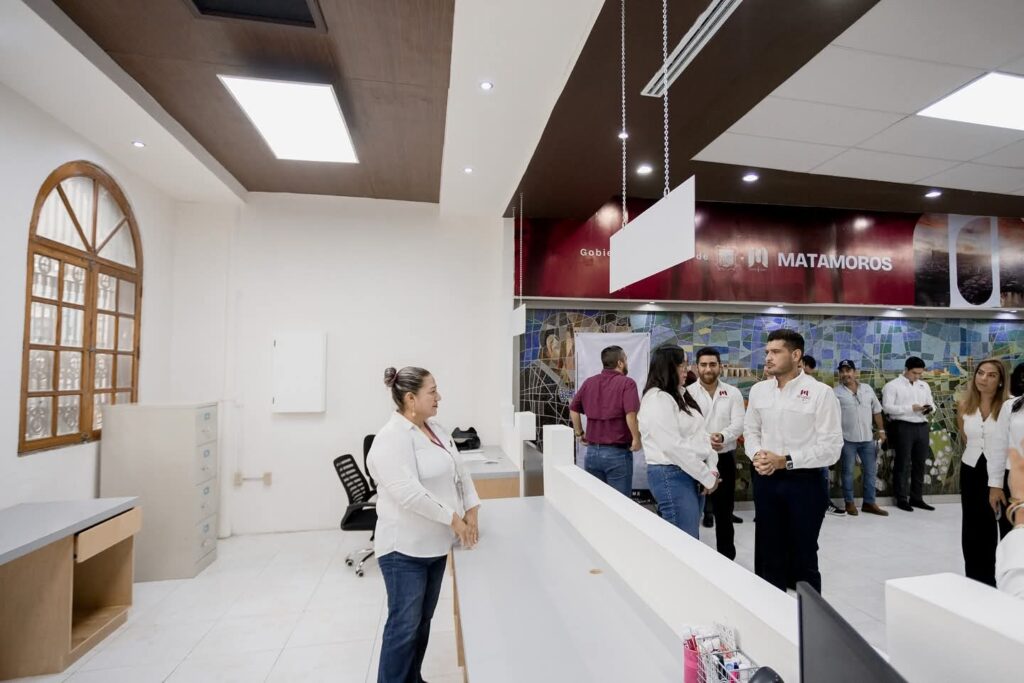 H. Matamoros, Tamaulipas.– Con el firme compromiso de seguir mejorando la atención a la ciudadanía, el alcalde Beto Granados entregó el nuevo recibidor de la Presidencia Municipal, un espacio digno, funcional y accesible que permitirá agilizar los trámites y servicios que ofrece el Gobierno Municipal.