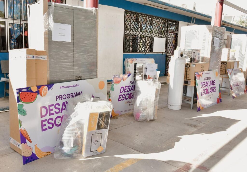 El programa “Desayunos Escolares” tiene como objetivo mejorar la alimentación de niñas, niños y adolescentes en situación vulnerable de escuelas de nivel básico y educación especial, garantizando que reciban comida nutritiva y balanceada. En esta ocasión, se entregaron diversos artículos indispensables para el funcionamiento de los comedores, entre los cuales destacan parrillas industriales, refrigeradores, alacena, licuadoras, platos, vasos, cubiertos, entre otros.
